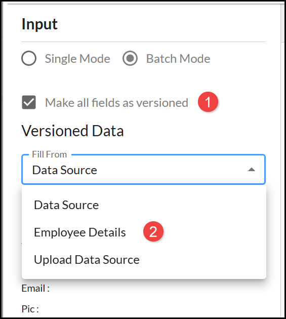 Products may also include an option to upload a Data Source. Select Batch Mode and: