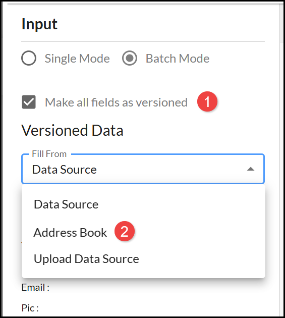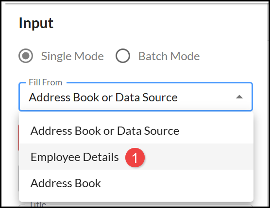 - From the Fill From menu select an Address Book or Data Source option (only pre-loaded Data Sources are displayed in Single Mode).
