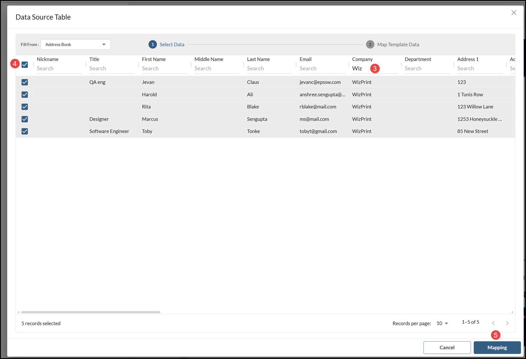 - When you have selected the records you want to include, choose Mapping.