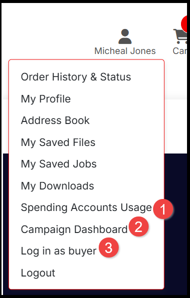 - If you are an Administrator for your organization's Account, you may have the option to Log in as a buyer.