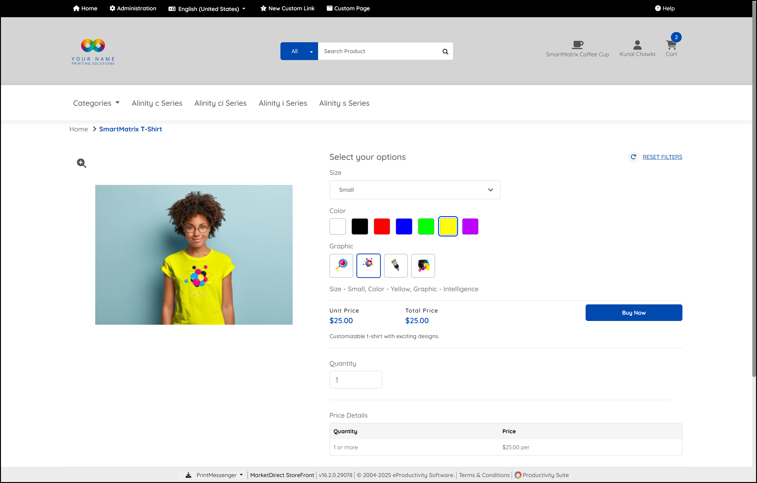 When you select a product you are directed to the Product Details page. The options available vary depending on the type of product selected and the options available for that particular product.