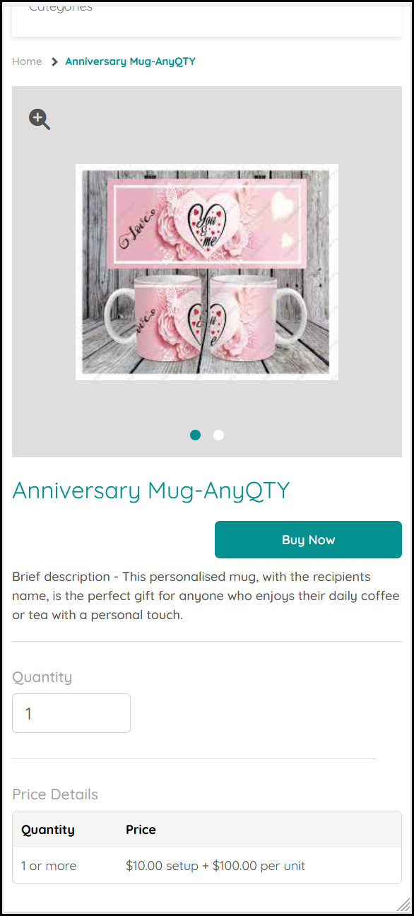 Store products can be viewed and purchased on a Mobile device though we would recommend using a larger screen if you are purchasing products which require significant design changes and bulk personalizations. The content is the same on all devices though the positioning of information may be different when using smaller screen sizes: